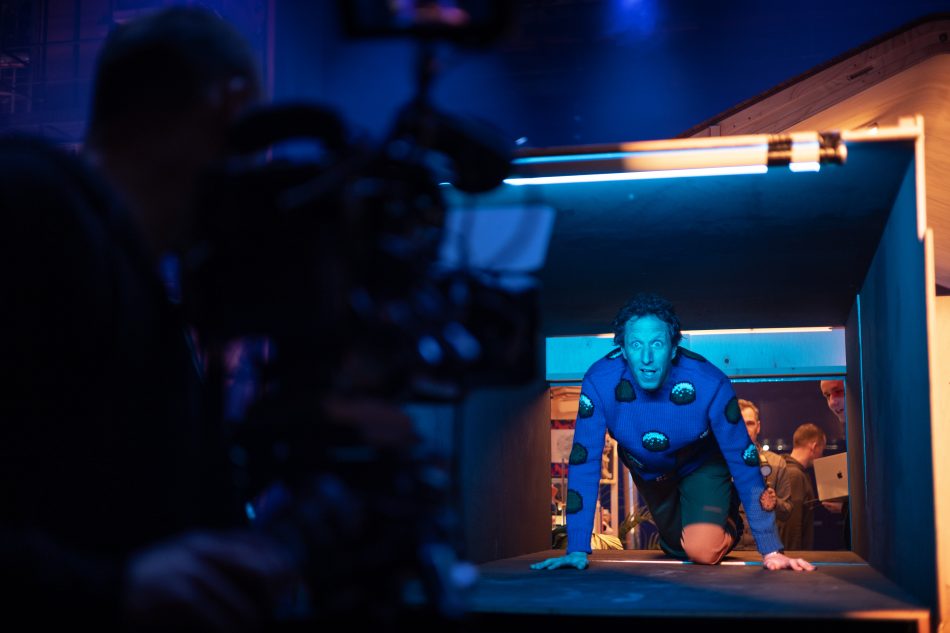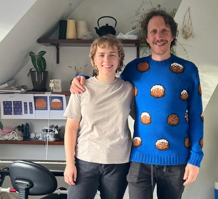 Casper Braat de alleskunner die behalve productie en TV-regie ook nog alle decors ontwierp, het huis inrichtte en met een even grote grijns als altijd mijn oliebollen trui ontwierp.